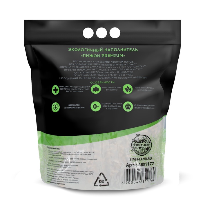 Наполнитель древесный «Пижон» Premium White, белые пеллеты, 10 л