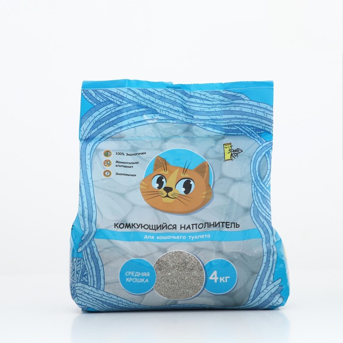 Комкующийся наполнитель «Золотой кот», в состав которого входят улучшенные минералы. Он активно удерживает влагу и запах, имеет небольшой расход. При контакте с жидкостью мгновенно образуются комочки. Специально подобранный размер гранул, не ранит лапки животного и не прилипает к шерсти.