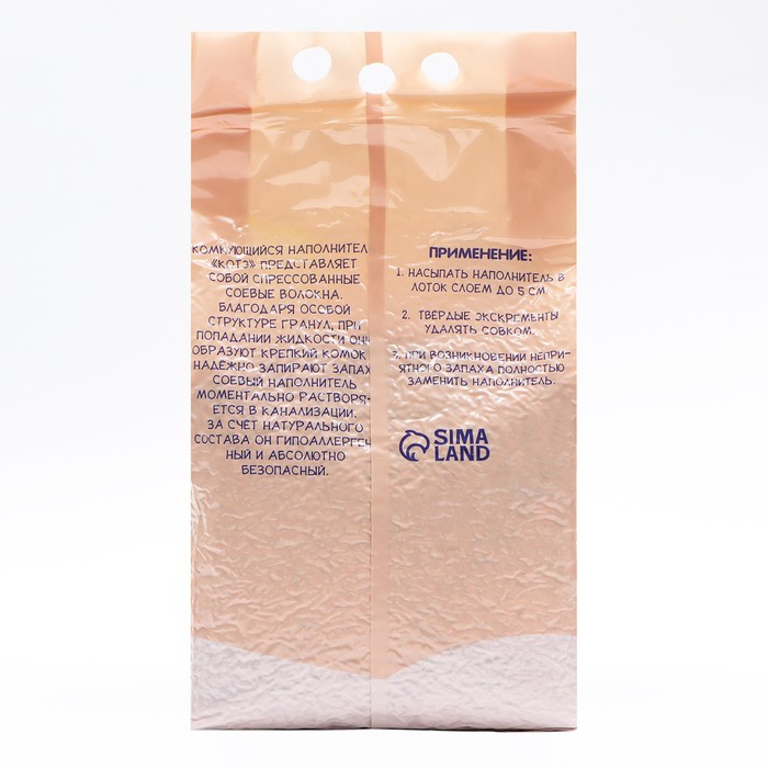 Состав: Кукурузный крахмал, кукурузные волокна, древесные волокна, волокна соевых бобов, масса волокон из соевой муки, натуральные отдушки.