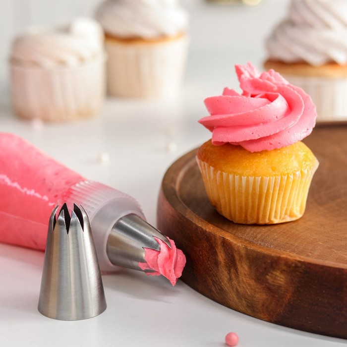 Насадка предназначена для нанесения на выпечку необычных украшений из крема. Пользоваться изделием просто: достаточно присоединить его к универсальному кондитерскому мешку.