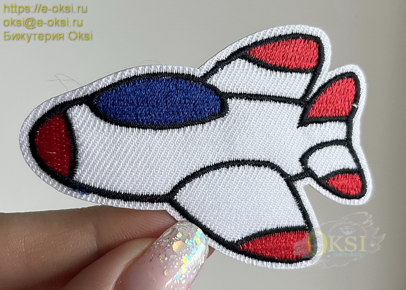 Нашивка-аппликация Самолет, размер 6,5*4,5 см . На обратную сторону нанесен слой термоклея, крепится при помощи утюга.