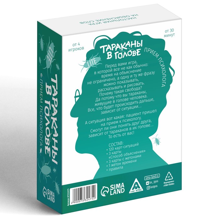 Перед вами игра, в которой всё не как обычно: время на объяснение не ограничено, а одну и ту же фразу можно показывать, рассказывать и рисовать. Почему такая свобода? Да потому что вы — тараканы, живущие в голове человека. Всё, что будет происходить дальше, зависит от ситуации. А ситуация вот какая: пациент пришёл на приём к психологу. Смогут ли они понять друг друга — зависит от тараканов в их голове… то есть от вас!