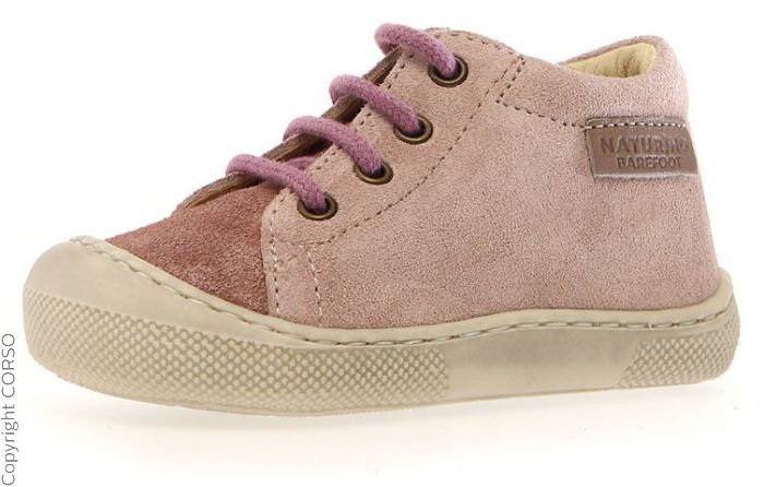 Barfußschuh mit Schnürung für Laufanfänger, Aus weichem Veloursleder mit seitlichem Logo, Innenausstattung aus weichem Leder, Großzügiger Vorfußbereich und gepolsterter Schaftrand, EURO