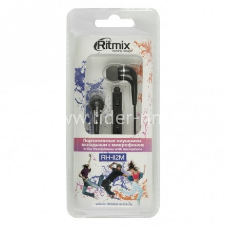 Наушники RITMIX RH-112M микрофон; кнопка ответа вызова (черные)