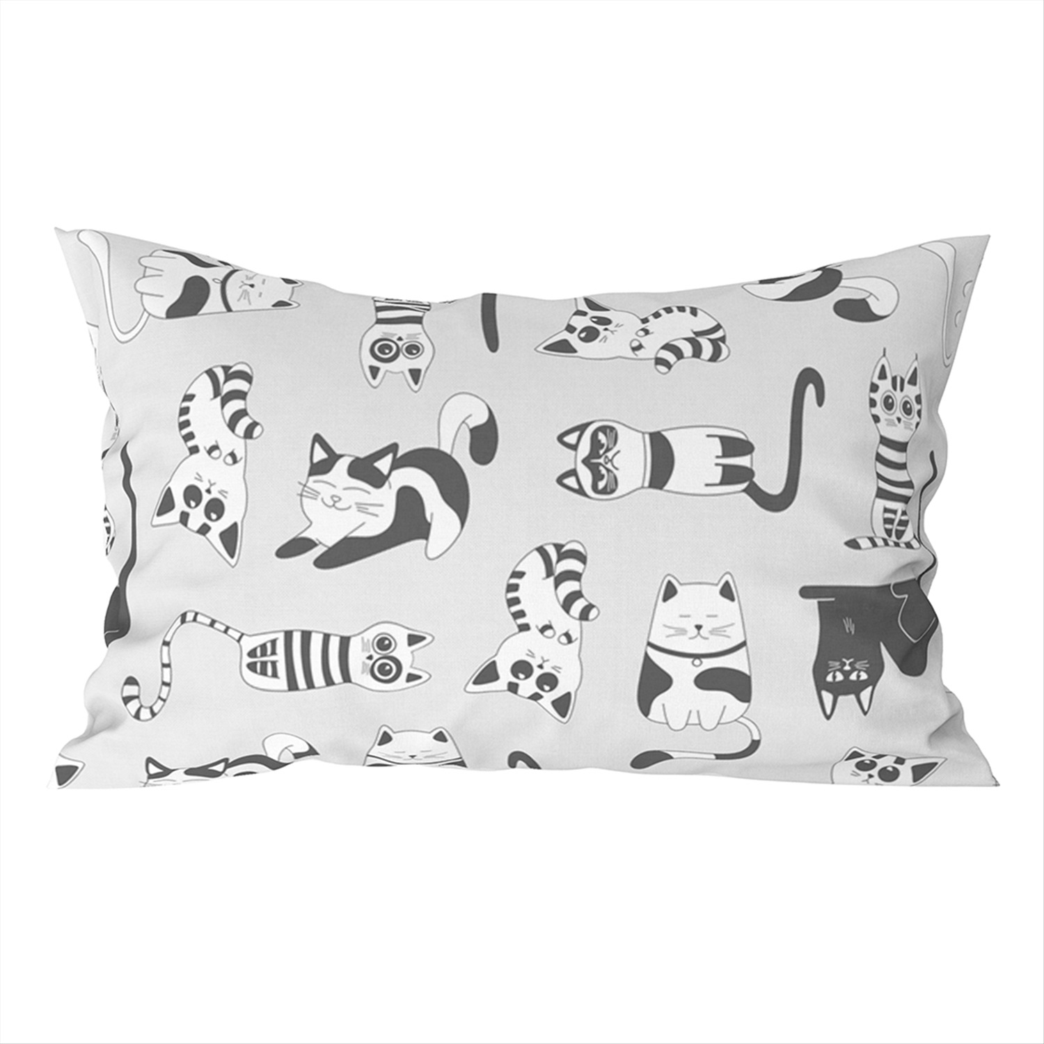 Наволочка 50х70см "Кошки, б/з серый", с клапаном-запахом, бязь "Комфорт" 121г/м2, хлопок 100%, упаковка "классическая" пакет ПВД 14,5х23см, еврослот, "Домашняя мода" (Россия)
