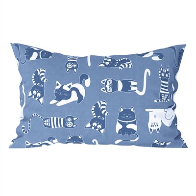 Наволочка 50х70см "Кошки, синий", с клапаном-запахом, бязь "Комфорт" 121г/м2, хлопок 100%, упаковка "классическая" пакет ПВД 14,5х23см, еврослот, "Домашняя мода" (Россия)