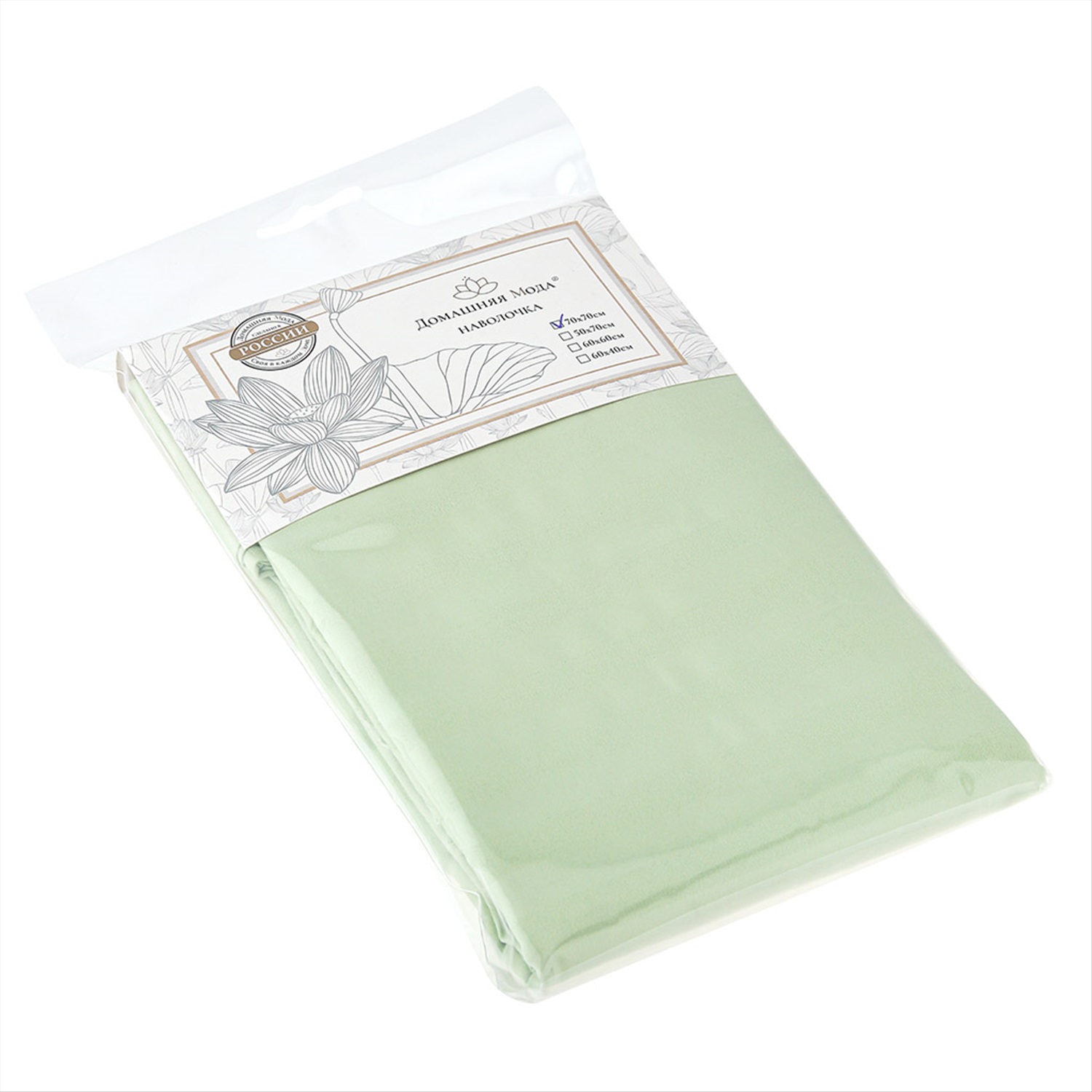 Наволочка 70х70см "Фисташка", с клапаном-запахом, микрофибра-страйп 90г/м2, упаковка ПП 22х30см, "Домашняя мода" (Россия)