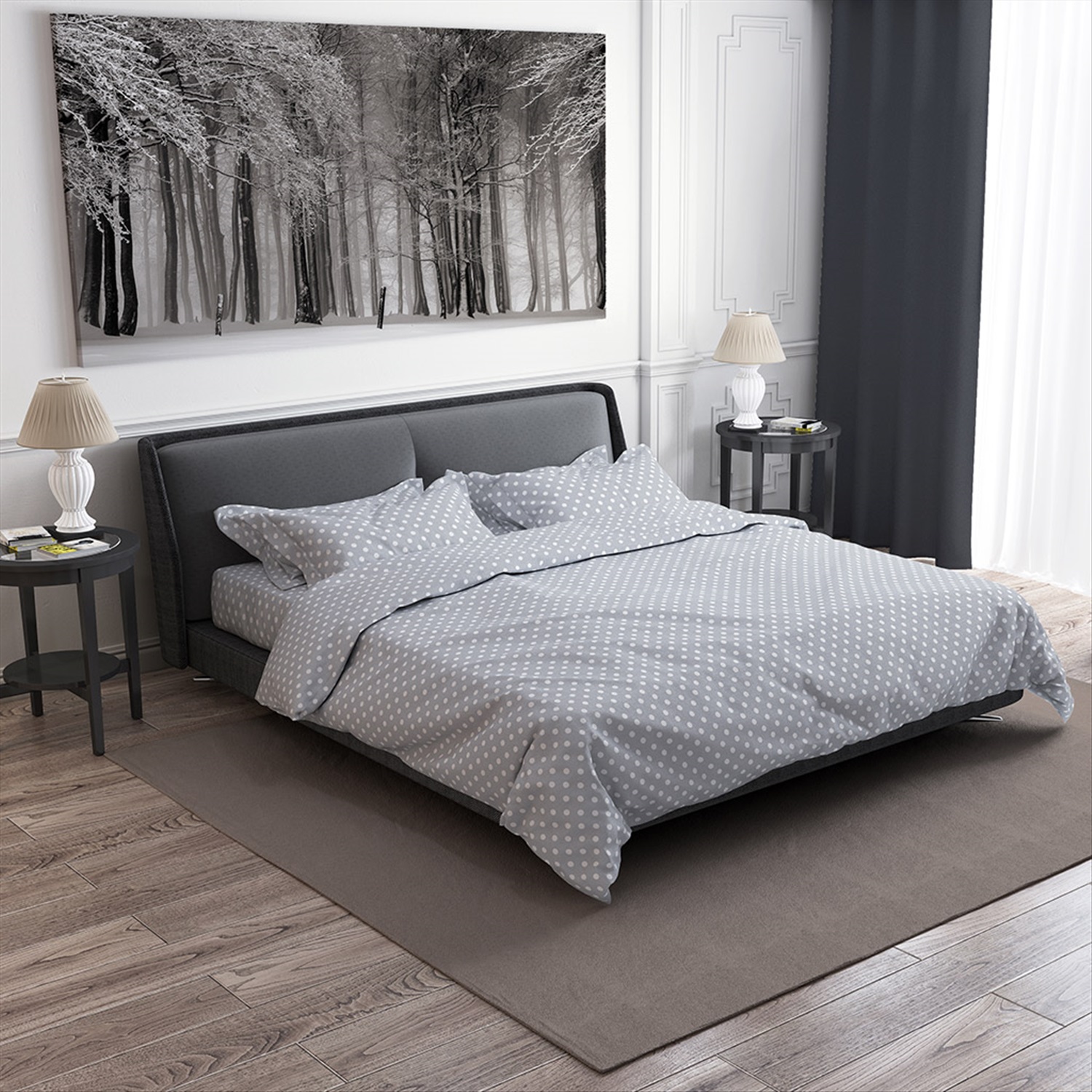 Наволочка 70х70см "Горошек, серый", с клапаном-запахом, бязь "Комфорт" 121г/м2, хлопок 100%, упаковка ПП 22х30см, "Домашняя мода" (Россия)