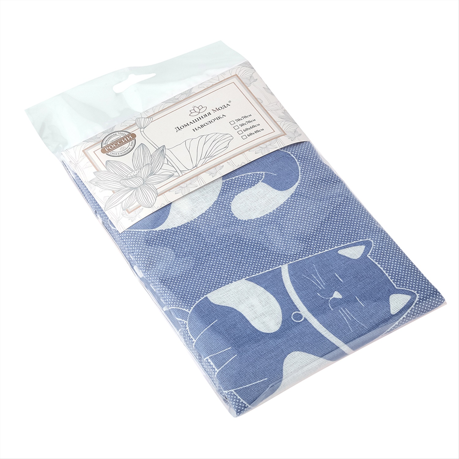 Наволочка 70х70см "Кошки, синий", с клапаном-запахом, бязь "Комфорт" 121г/м2, хлопок 100%, упаковка "классическая" пакет ПВД 14,5х23см, еврослот, "Домашняя мода" (Россия)