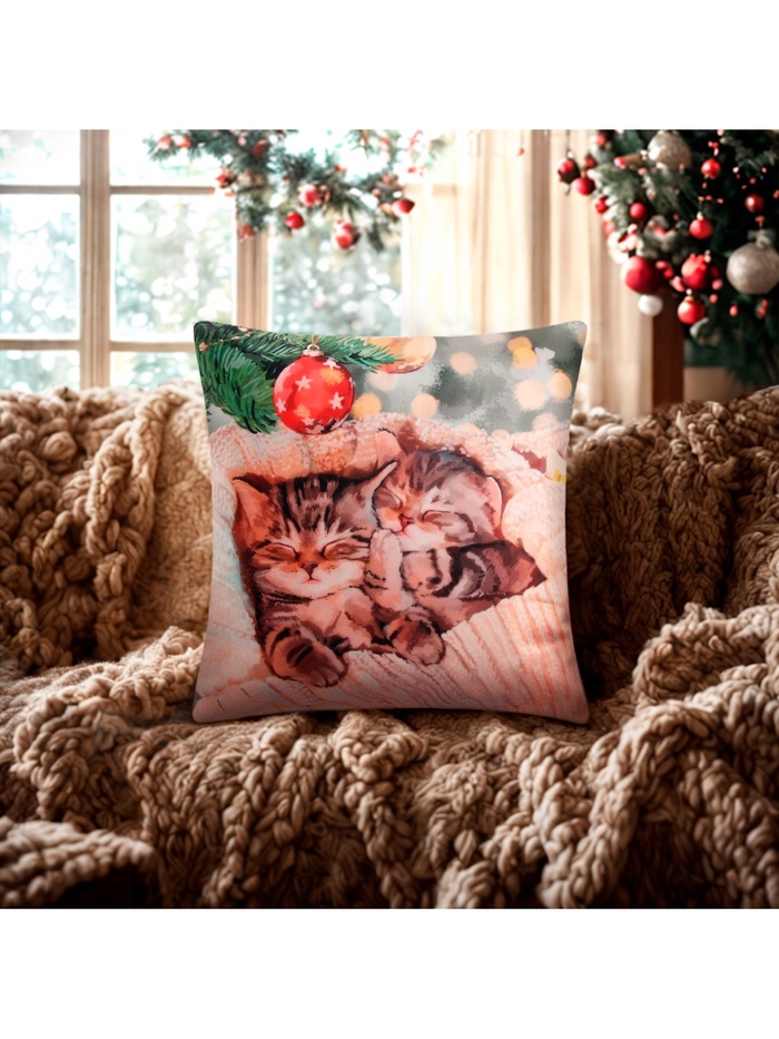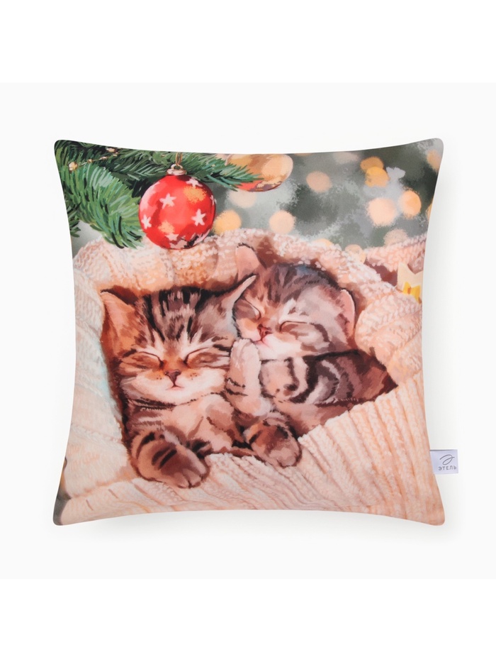 Наволочка декоративная новогодняя «Этель. Котята» 40×40 см, велюр