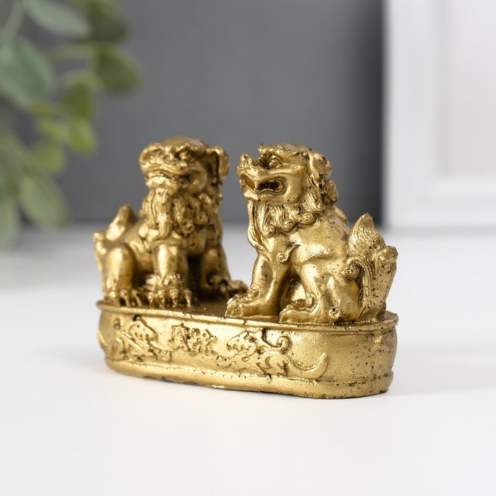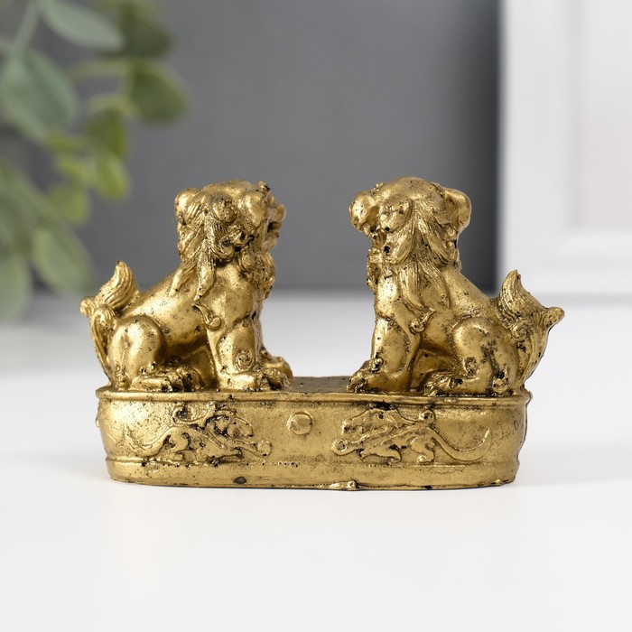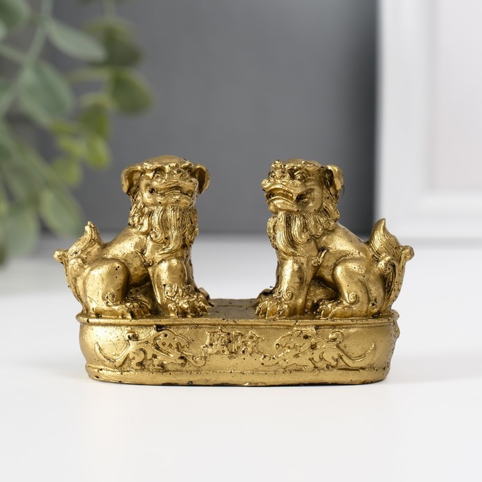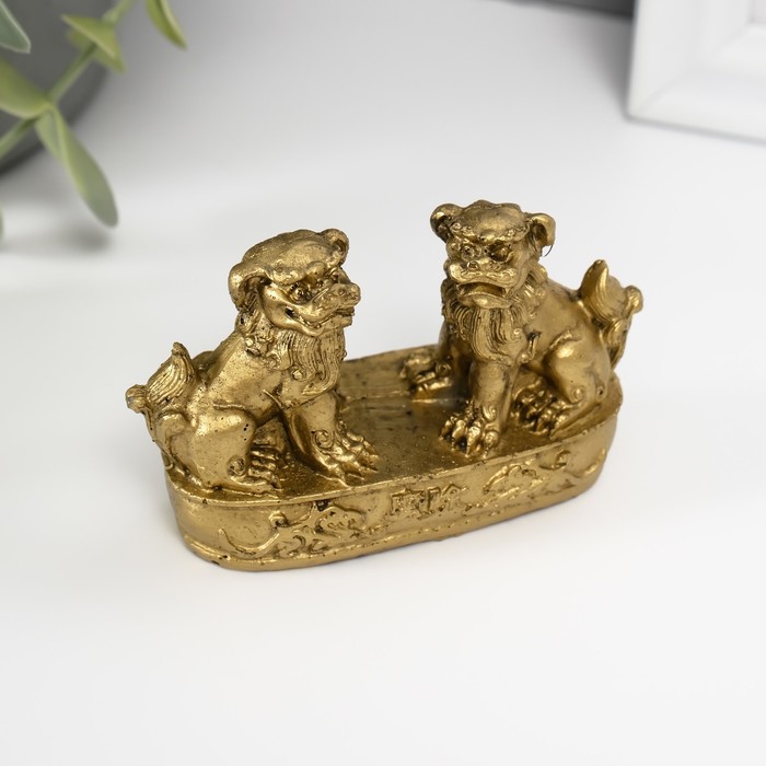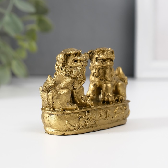 Нэцкэ фигурка полистоун «Небесные львы: собаки Фу», под бронзу, 2.8×8.2×5 см
