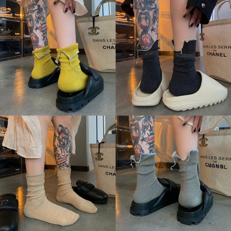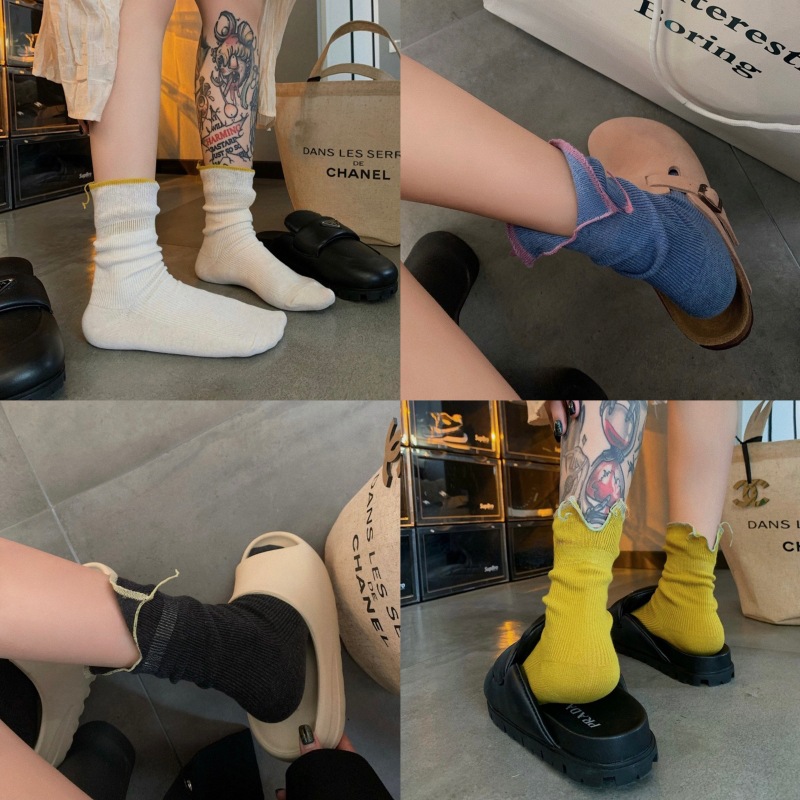 Net Red Men and Women's Step in the Men and Women of the Packing Stacking Mock Design Japanese Literature and Art Cotton Middle Tube Retro Niche Model