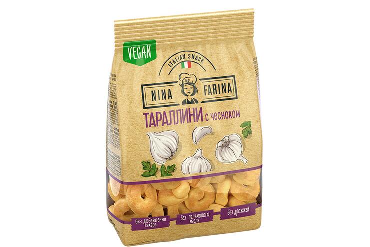 Производитель: Nina Farina; Производитель: ООО "КДВ Воронеж"; Страна производства: Россия; Условия хранения: хранить в сухих вентилируемых помещениях при температуре воздуха не выше +25°С и относительной влажности воздуха не более 75 %; Срок хранения: 12 мес.; Количество в коробке: 24 шт; Вес: 180 г; Белки: 9.5; Жиры: 20; Углеводы: 64; Калории: 470; Стандарт: СТО 90303483-013-2018; Упаковка: фасованный; Вес коробки: 4.77; Вид: тараллини; Вкус: чеснок; Состав продукта: мука пшеничная хлебопекарная, вода питьевая, масло подсолнечное высокоолеиновое рафинированное дезодорированное, соль, спирт этиловый ректификованный из пищевого сырья, чеснок сушеный порошок. Возможно наличие продуктов переработки молока.