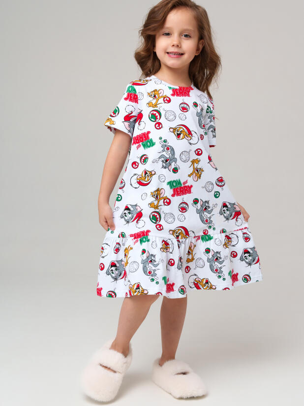 Мягкая и яркая ночная сорочка для девочки с Том и Джерри от PlayToday — лучшее решение для комфортного сна и домашнего уюта.