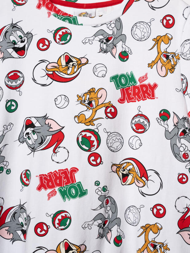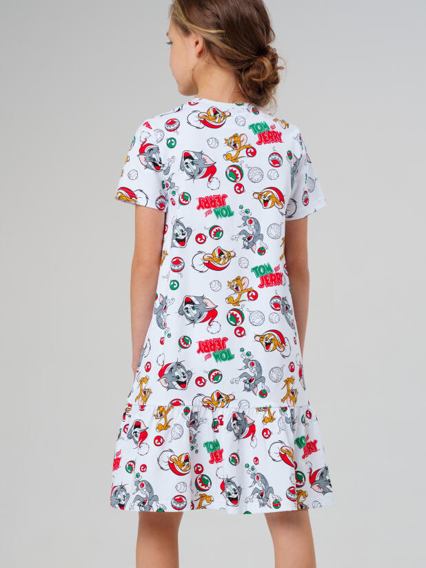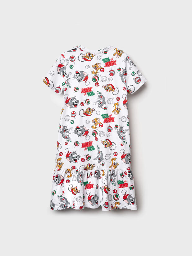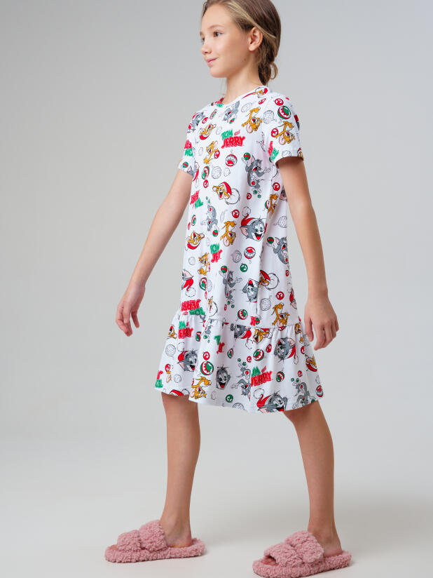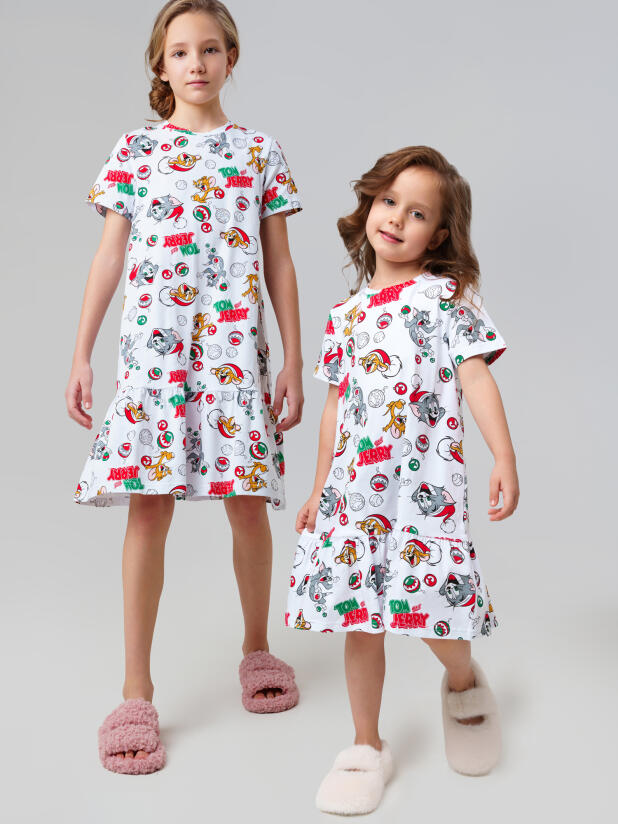 + яркий новогодний детский принт Том и Джерри — девочке будет приятно носить сорочку каждый день