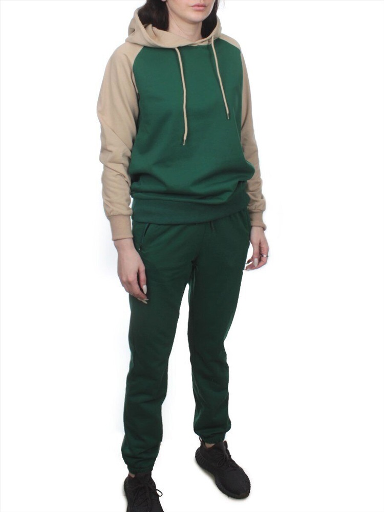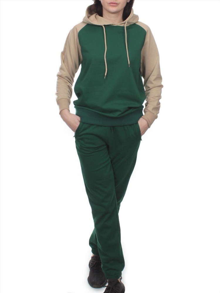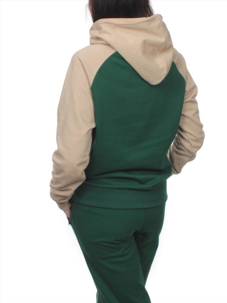 Кол-во в упаковке: 1 Костюм спортивный женский (хлопок 90%, полиэстер 10%) Модель сезона: весна-осень. Артикул: NOE103 BEIGE/GREEN Фото сделано на модели размера 44/46 Рост модели 175 см., объем груди 90, талия 72, бедра 96. Витринный образец размера L — 46 российский: Олимпийка: Капюшон с регулировочным шнурком, несъемный, ткань в два слоя.. Рукава и и по низу трикотажные манжеты. Длина плеча до линии рукава 12 см. Длина рукава от линии плеча 59 см. Длина спины 63 см. Объем спины/груди 102 см. Объем талии 88 см. (тянется +8 — 12 см.) Брюки: Два кармана спереди на молнии. Пояс на резинке со шнурком, ширина 5 см. Низ штанины на резинке. Объем талии 70 см. (тянется +6 — 8 см.) Объем бедер 100 см. Объем колена 40 см. Объем по нижней части штанины, в районе резинки 24 см. Длина внешней части штанины (замеры из под пояса) 98 см. Длина внутренней части штанины 76 см. Посадка (с поясом) 29 см. Состав ткани: 90% хлопок, 10% полиэстер. Размер указанный на спортивном костюме и соответствие российским стандартам: L — 46 российский XL — 48 российский 2XL — 50 российский 3XL — 52 российский Комментарии к товару