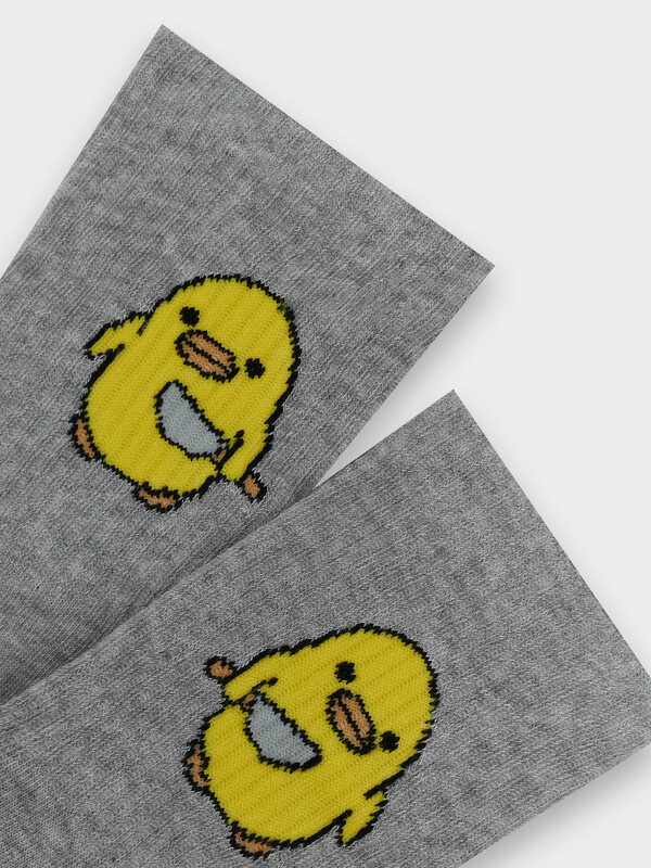 рис.2880 Носки высокие с плотным бортом и рисунком в виде надписи цыпленка.