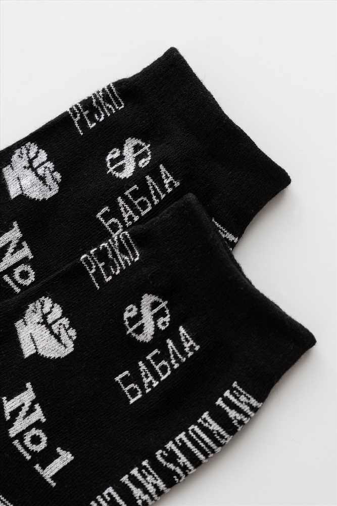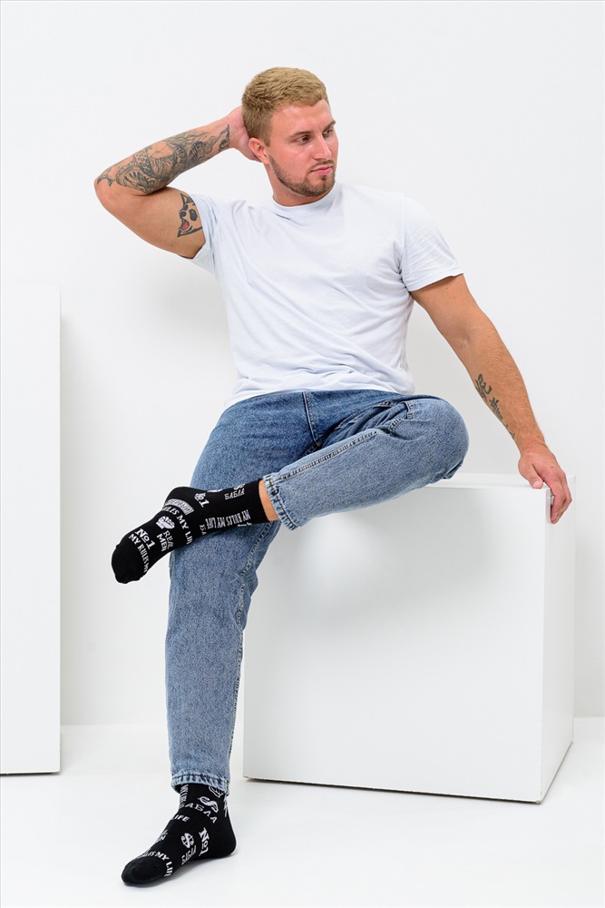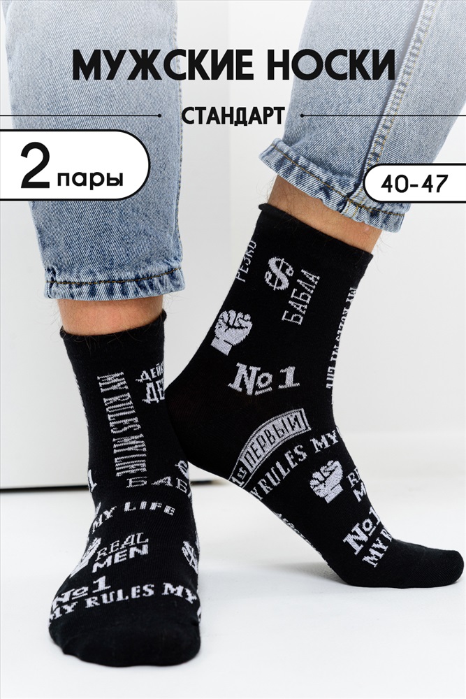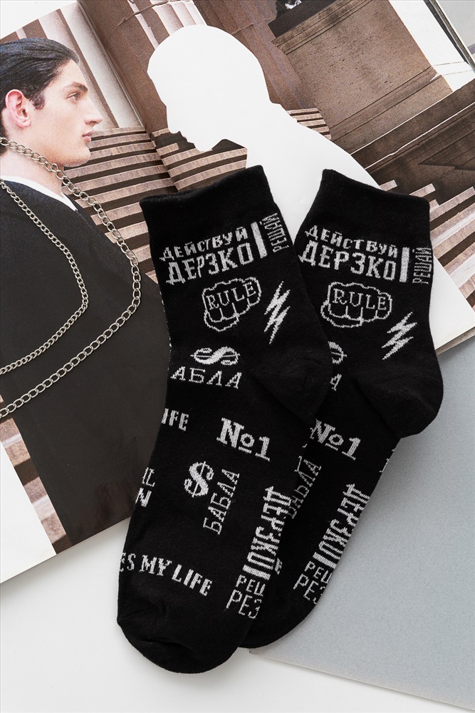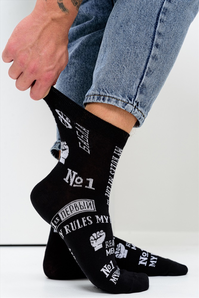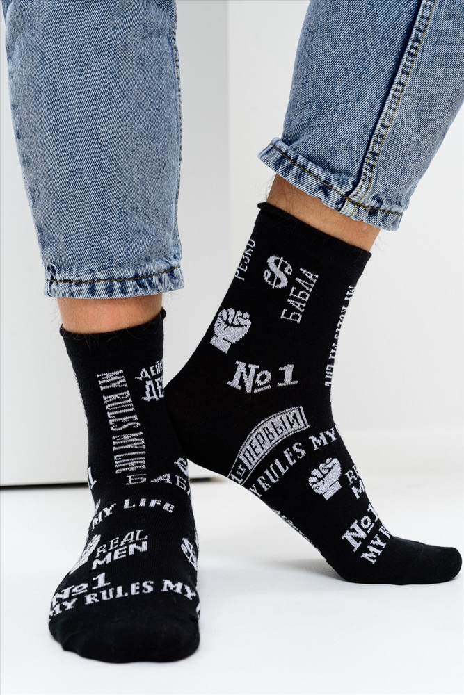 Комплект смелых носков для мужчин. В наборе 2 пары. По всему носку различные надписи.