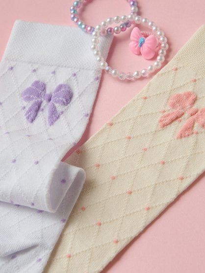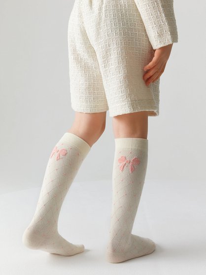 Оптовая продажа. Гольфы для девочек ажурные с имитацией рисунка ромб и бантиком сзади, из высококачественного хлопка с добавлением полиамида и эластана. Натуральный хлопок обеспечивает мягкость и воздухопроницаемость, а синтетические волокна добавляют износостойкость, сохраняя форму даже после активной носки и многочисленных стирок. Кеттельный (плоский) шов для дополнительного комфорта. Комфортная широкая резинка обеспечивает эффективное удержание без передавливания. Универсальная модель для любого образа, повседневного или праздничного.