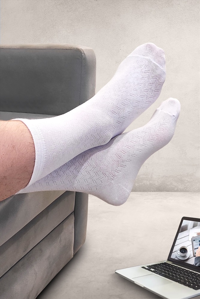 Высокие однотонные носки с вывязанным узором в рубчик. В упаковке 6 пар - 4 черные, 2 белые