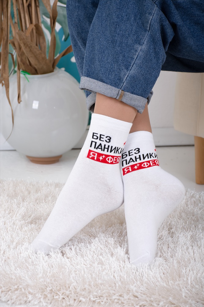 Набор оригинальных женских носочков с надписями. В упаковке 3 пары - по 1 паре каждого вида. Упаковка - пакет