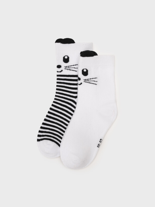 Набор детских носков для девочки. Носки из высококачественного хлопка с добавлением нейлона и эластана. Комфортная модель с усиленным мыском и пяткой. Мягкая широкая резинка хорошо фиксируется по ноге ребенка. 2 пары в сете.
