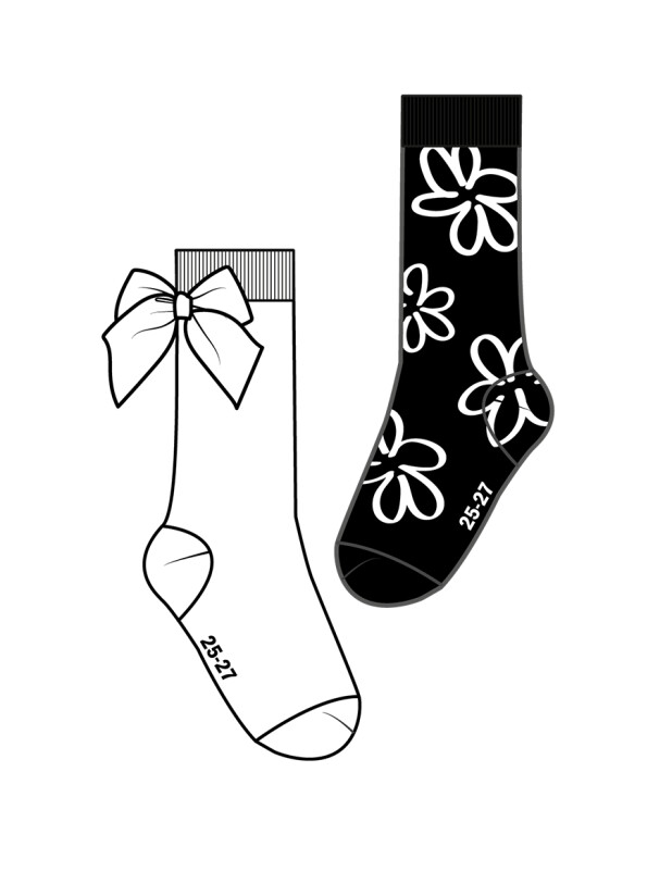 Набор детских носков для девочки. Носки из высококачественного хлопка с добавлением нейлона и эластана. Комфортная модель с усиленным мыском и пяткой. Мягкая широкая резинка хорошо фиксируется по ноге ребенка. 2 пары в сете. Декор - банты.