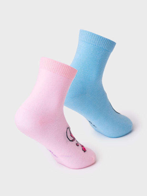 Набор из двух пар детских носков для девочки. В комплект входят носки двух расцветок с любимыми персонажами Лило и Стич. Носки выполнены из мягкого трикотажа, хорошо тянутся и комфортно сидят на ноге благодаря эластичной резинке в верхней части. Усиленные мысок и пятка.