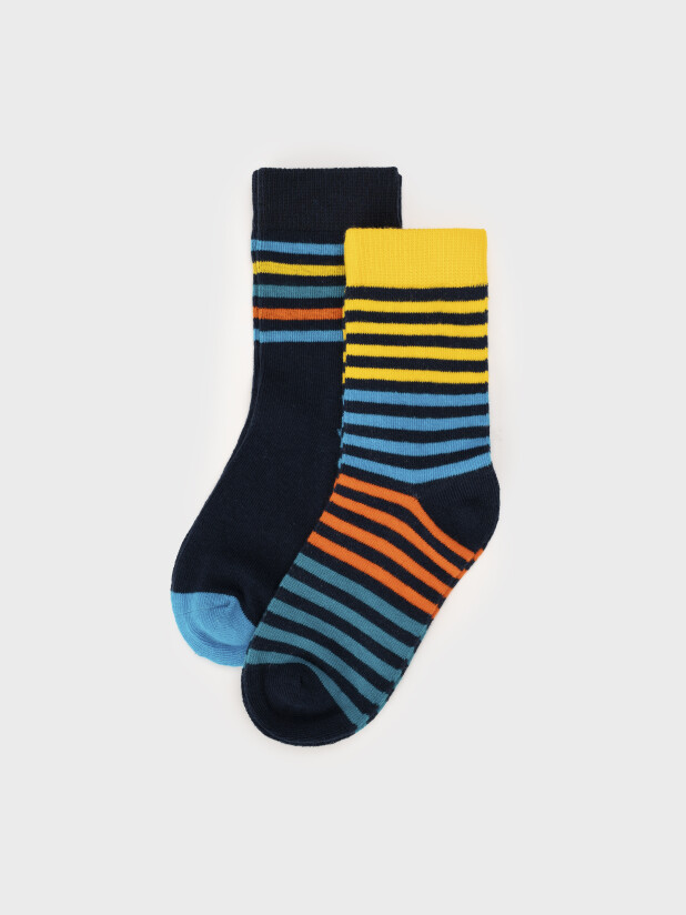 Набор детских носков для мальчика. Носки из высококачественного хлопка с добавлением нейлона и эластана. Комфортная модель с усиленным мыском и пяткой. Мягкая широкая резинка хорошо фиксируется по ноге ребенка. 2 пары в сете.