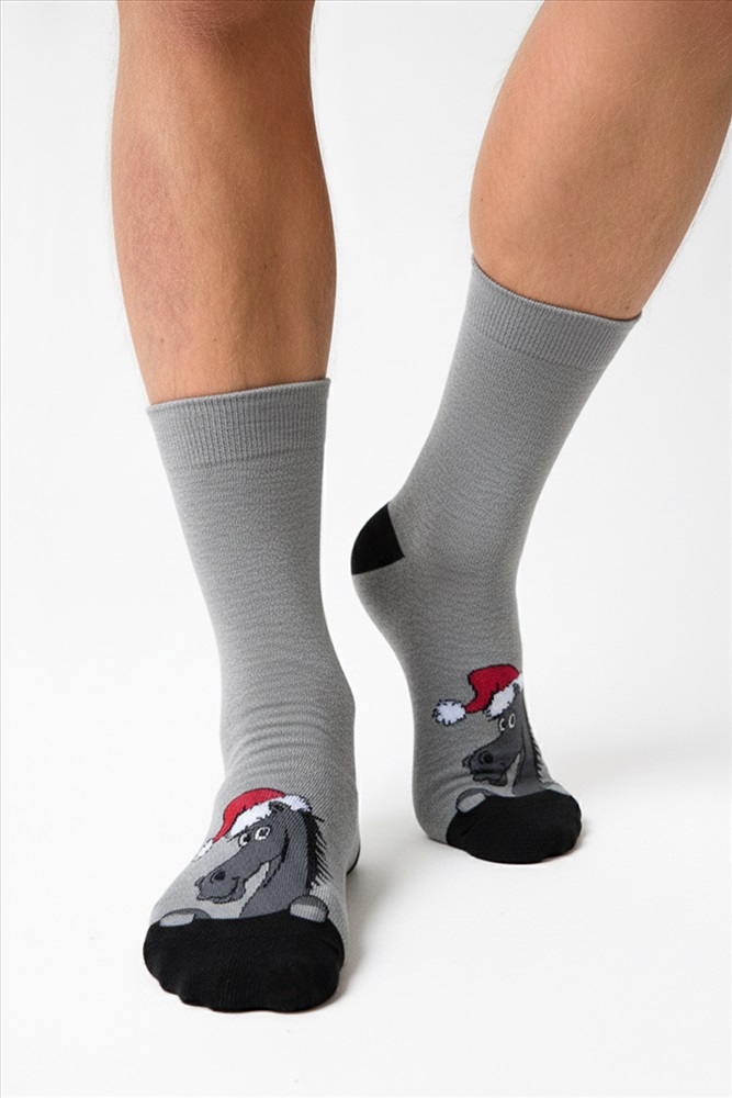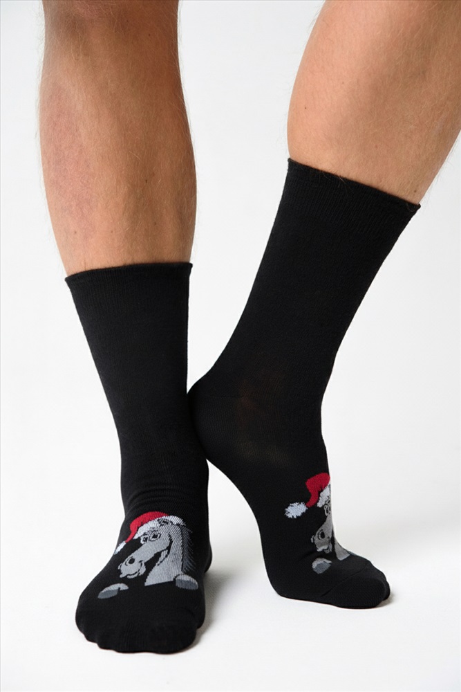 Состав: 78% х/б 20% ПЭ 2% эластан Модель: Носки мужские Лукас Тип товара: носки высокие Материал: чулочно-носочный трикотаж | чулочно-носочный трикотаж Бренд: Amichevole Berchelli Рейтинг: Рейтинг 4 и выше Рисунок: новогодний | зверюшки Сезонность: лето | осень | весна | зима Стиль: повседневный Новогодние мужские носочки с символом 2026 года. Отличный подарок на праздник для друга, сына, коллеги и любимого. Таблица размеров и веса