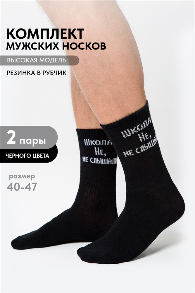 Состав: 76% х/б 22% ПА 2% эластан Модель: Носки мужские Не слышали (набор 2 пары) Тип товара: носки высокие Материал: чулочно-носочный трикотаж | чулочно-носочный трикотаж Бренд: Amichevole Berchelli Рисунок: надпись Сезонность: лето | осень | весна | зима Стиль: для школы | повседневный Комплект ноской для мужчин. Широкая резинка, надпись Школа, не, не слышали В комплекте 2 пары. Таблица размеров и веса