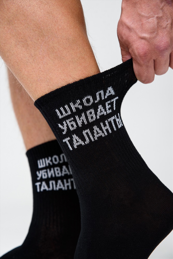 Состав: 76% х/б 22% ПА 2% эластан Модель: Носки мужские Талант (набор 2 пары) Тип товара: носки высокие Материал: чулочно-носочный трикотаж | чулочно-носочный трикотаж Бренд: Amichevole Berchelli Рисунок: надпись Сезонность: лето | осень | весна | зима Стиль: для школы | повседневный Комплект ноской для мужчин. Широкая резинка, надпись Школа убивает таланты В комплекте 2 пары. Таблица размеров и веса