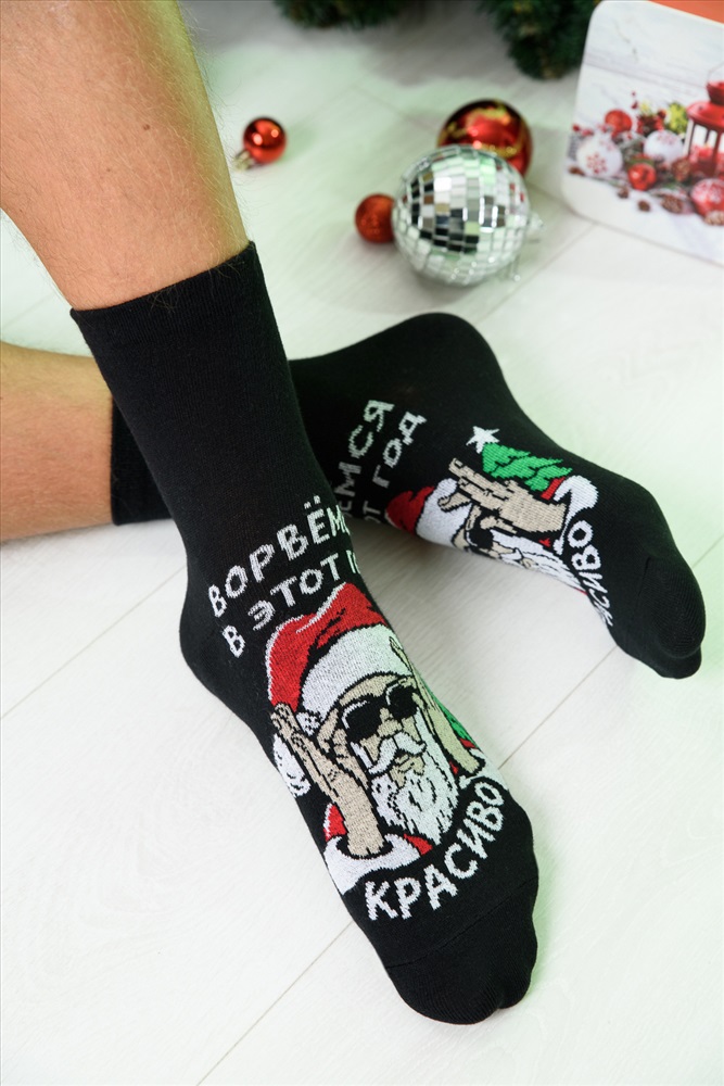 Состав: 80% х/б 18% ПА 2% эластан Модель: Носки мужские Ворвёмся Тип товара: носки высокие Материал: чулочно-носочный трикотаж | чулочно-носочный трикотаж Бренд: Amichevole Berchelli Рисунок: новогодний | разное Сезонность: лето | осень | весна | зима Стиль: домашний | повседневный Оригинальные мужские новогодние носки. В комплекте 1 пара. На основной части носка изображение Санта Клауса и надпись Ворвемся в этот год красимо. Таблица размеров и веса