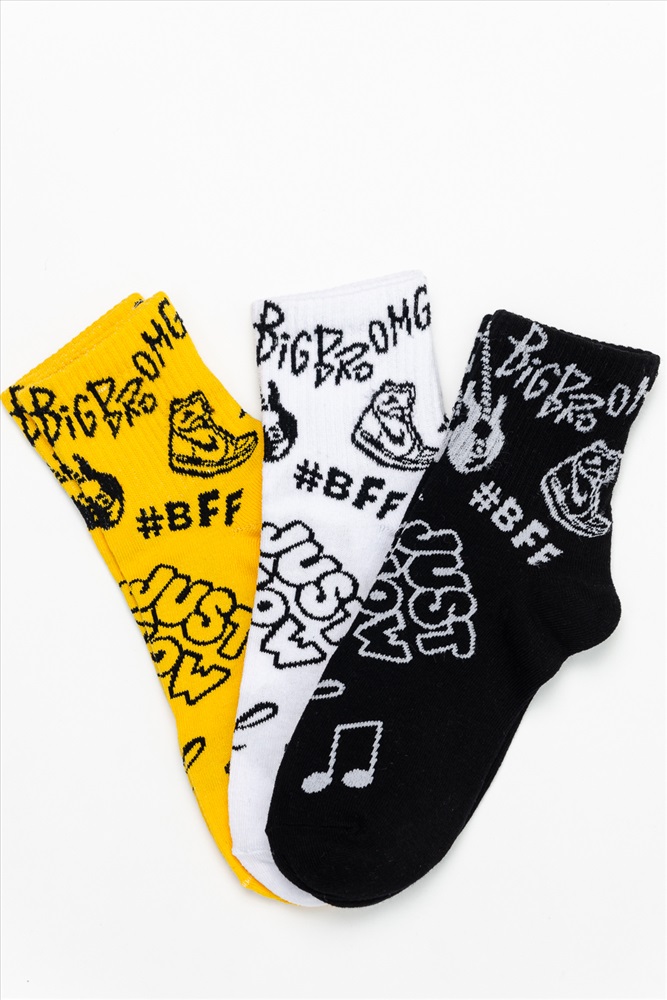 Набор высоких женских носков с широкой резинкой в стильной расцветке. В упаковке 3 пары - по 1 паре каждой расцветки. В продаже есть аналогичные мужские и подростковые носки