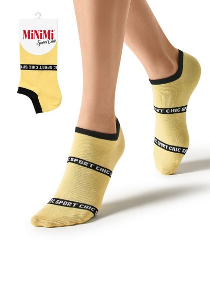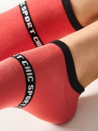 Оптовая продажа. Женские укороченные носки c контрастным принтом в виде повторяющихся полосок и надписью "sport chic". Удобная резинка обеспечивает идеальное облегание, а кеттельный (плоский) шов на мыске создает дополнительный комфорт.