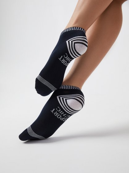 Оптовая продажа. Женские укороченные носки из высококачественного дышащего хлопка. Материал в составе отлично впитывает влагу и подходит даже для чувствительной и нежной кожи. Превосходно облегают благодаря удобной резинке и комфортно ощущаются в течение всего дня благодаря кеттельному (плоскому) шву на мыске. Оригинальный рисунком на пятке и акцентный принт на мыске и резинке.