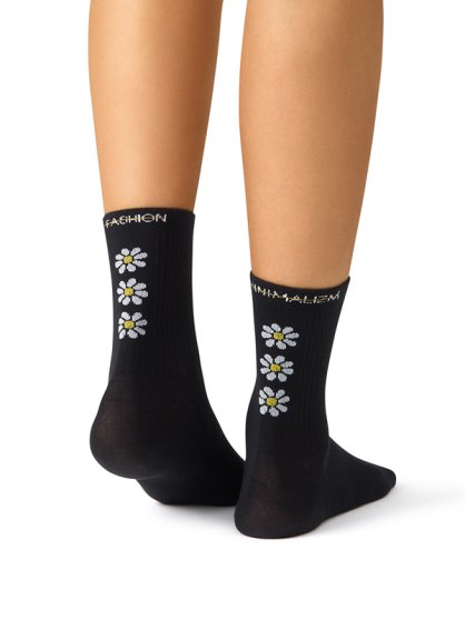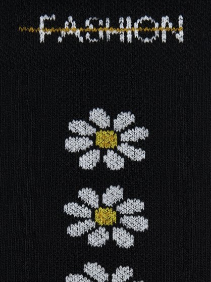 Оптовая продажа. Носки женские высокие из хлопка, с "цветочным" рисунком на резинке и надписью "Fashion Minimalism". Удобная резинка, кеттельный (плоский) шов на мыске создают дополнительный комфорт.