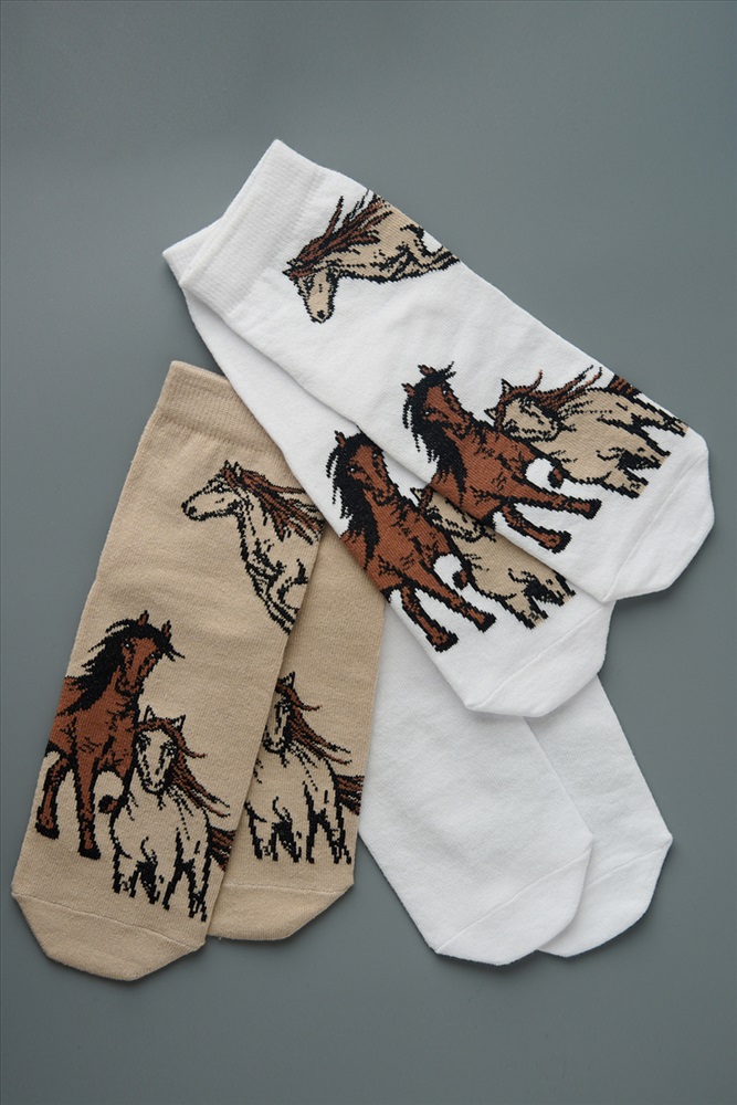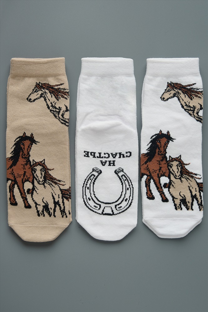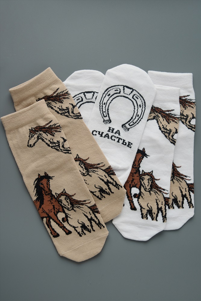 Состав: 80% х/б 18% ПА 2% эластан Модель: Носки женские Лошадки (набор 3 пары) Тип товара: носки стандарт Материал: чулочно-носочный трикотаж Бренд: Amichevole Berchelli Сезонность: лето | осень | весна | зима Комплект женских носков с новогодней тематикой. В наборе 3 пары разного цвета. Упаковано в подарочную коробку. Таблица размеров и веса