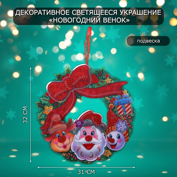 Новогоднее светящиеся украшение настенное «Новогодний венок», подвеска, 32х31 см