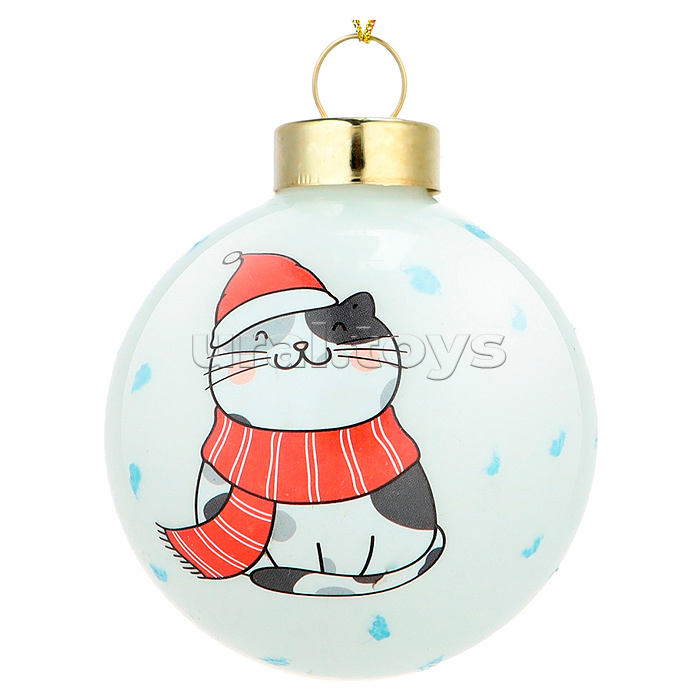 Новогоднее украшение. Елочный стеклянный шар "Котик в шарфике" 6см
