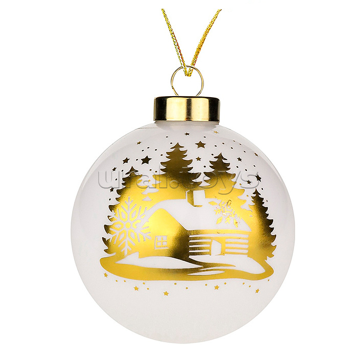 Новогоднее украшение. Елочный стеклянный шар "Золотистая опушка" 8см