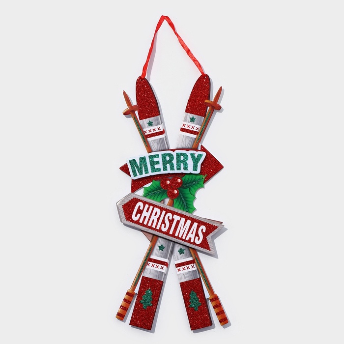 Новогоднее украшение настенное «Лыжи», подвеска, 42,5х17