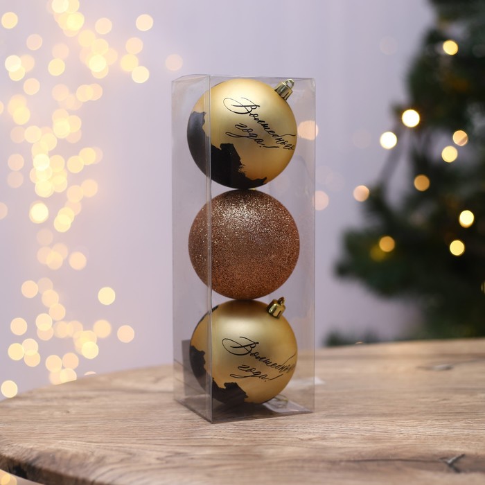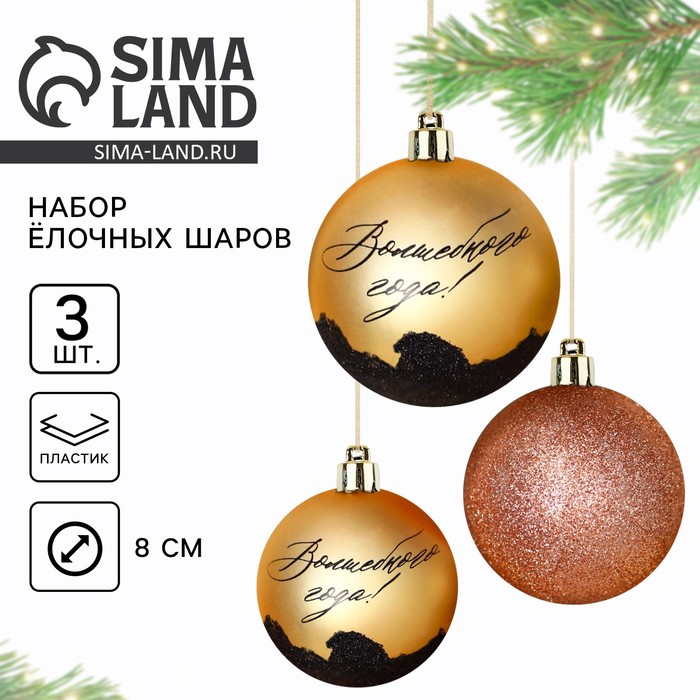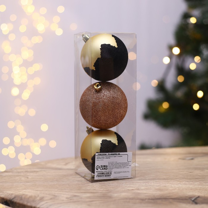 Габариты: 8 x 8 x 27 Страна: Китай В боксе: 50 набор Состав: Пластик Материалы: пластик Фасовка: по 1 набор Индивидуальная упаковка: PVC коробка Габариты товара: 7,8 см × 7,8 см × 23,5 см Сертификат: Не подлежит сертификации Набор: Да Цвет: Золотистый В наборе, шт.: 3 Диаметр шара, см: 8 Символ года: Нет Материал: Пластик Стиль: Новогоднее барокко Фиксированная цена: Да Комментарии к товару
