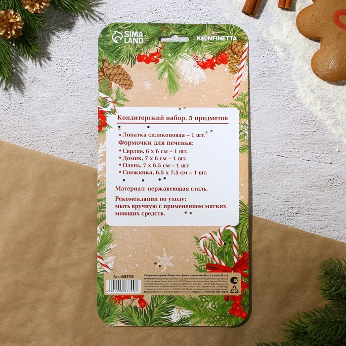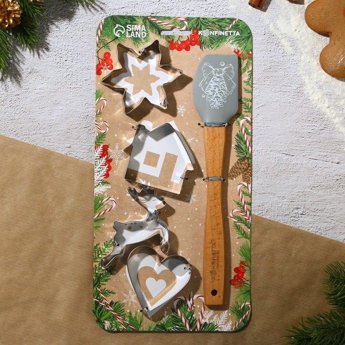Производитель: Сима-ленд; Габариты: 1,5 x 14,5 x 29; Страна: Китай; В боксе: 87 набор; Состав: Дерево, силикон, коррозионностойкая сталь; Материалы: дерево, силикон, Коррозионностойкая сталь; Фасовка: по 1 набор; Индивидуальная упаковка: Подложка; Сертификат: СТР; Набор: Да; Цвет: Бежевый; Фасовка, шт.: 1; В наборе, шт.: 5; Крышка: Нет; Символ года: Нет; Тематика праздника: Новый год; Материал: Дерево, Силикон, Нержавеющая сталь; Тип покрытия: Без покрытия; Тип формы: Для печенья и пирожных; Разъёмная форма: Нет; Тематика: Новый год; Можно мыть в посудомоечной машине: Нет; Вид: Кондитерские лопатки, Формы для выпечки