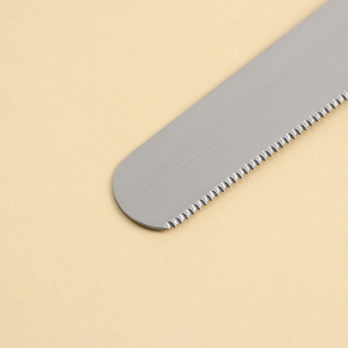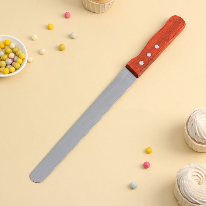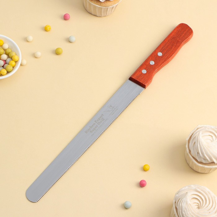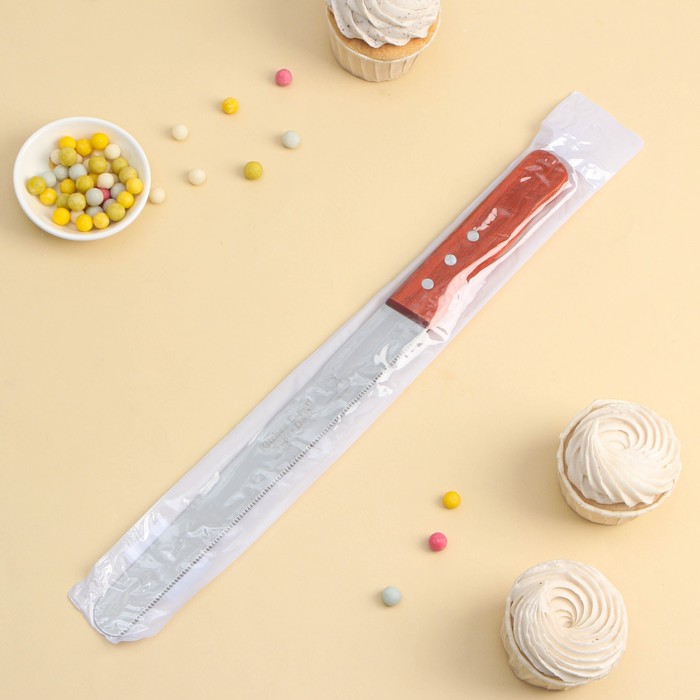 Габариты: 37 x 3 x 1 Страна: Китай В боксе: 288 шт Состав: Дерево, нержавеющая сталь Материалы: дерево, нержавеющая сталь Фасовка: по 1 шт Индивидуальная упаковка: ПВХ-чехол Габариты товара: 37,5 см × 3 см × 1,5 см Сертификат: РСТ Набор: Нет Цвет: Коричневый Количество лезвий: 1 Длина лезвия, см: 25 Материал ручки: Дерево Материал: Нержавеющая сталь Материал лезвия: Нержавеющая сталь Назначение: Для бисквита Ребристое лезвие: Да Нарезка бисквита — занятие куда более хлопотное, чем кажется. Его рыхлая структура делает применение стандартного кухонного ножа неоправданным: кулинарный шедевр, на приготовление которого было затрачено столько продуктов, сил и времени, будет крошиться и потеряет аппетитный вид. Выбора профессионала — специальный нож для бисквита. Преимущества: