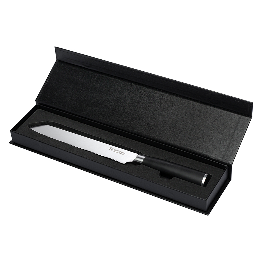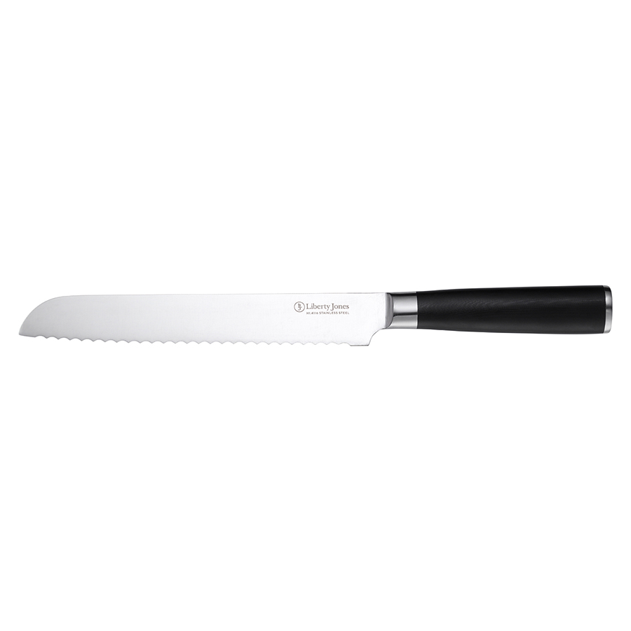 Бренд: Liberty Jones Коллекция: Icon Название товара: Нож для хлеба Icon, 21 см Артикул: LJ0000393 Материал: немецкая нержавеющая сталь 1.4116, композитный материал из стекловолокна G-10 Вес: 385 гр Размеры в упаковке (ШхГхВ): 37,6 х 8,7 х 3,1 см Размеры без упаковки (ШхГхВ): 3 х 33,1 х 2,4 см