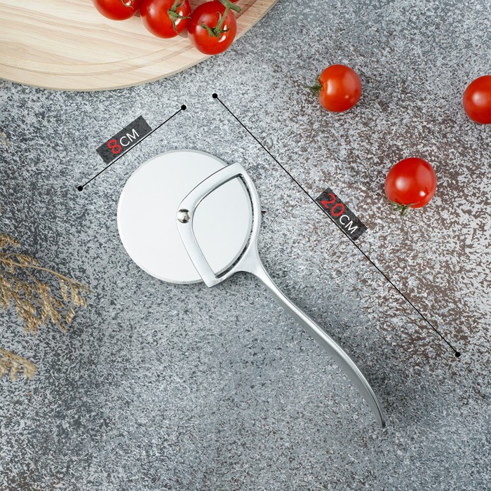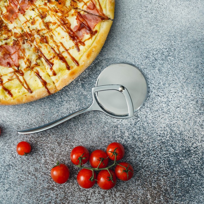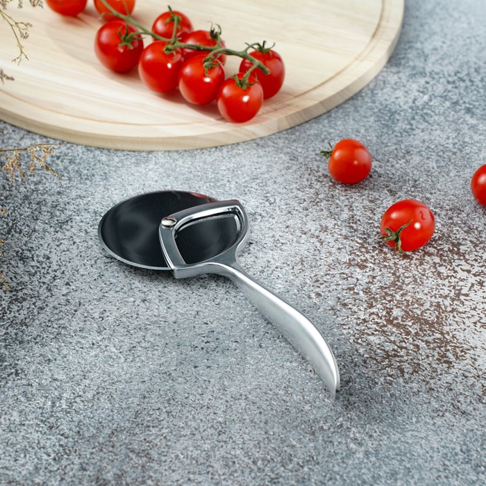 Нож для пиццы — универсальный кухонный инструмент, который не только легко разрезает готовую выпечку, но и помогает поделить на слайсы липкое тесто. Нож имеет эргономичную форму ручки и острое круглое лезвие. Колесо, прикреплённое к рукояти, продавливает продукт, а не разрезает его в отличие от классического ножа. Благодаря такому способу тесто разрезается, а начинка остается на месте.