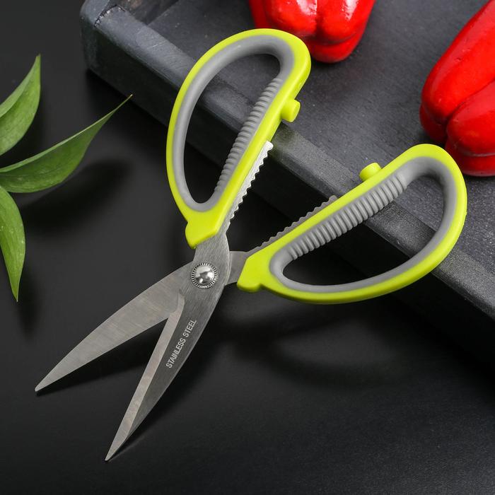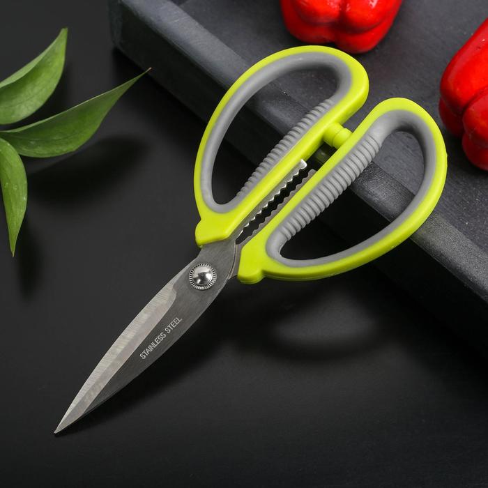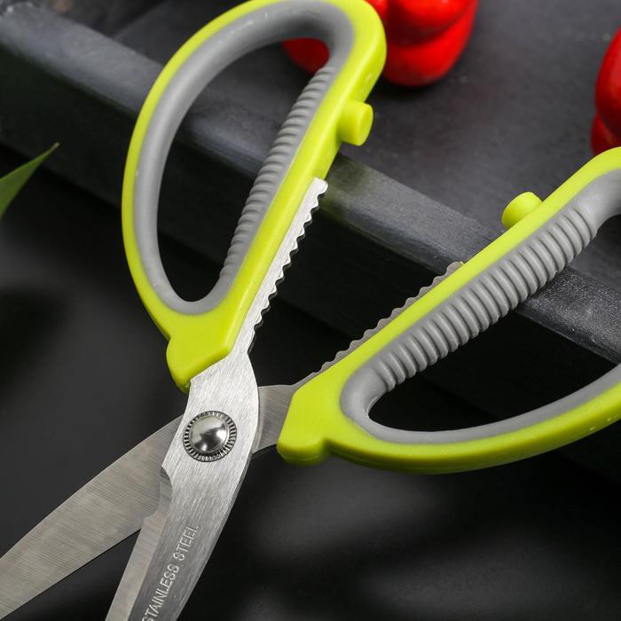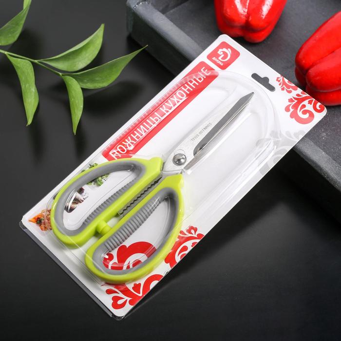 Ножницы кухонные Доляна «Помощник», 19 см, зелёные