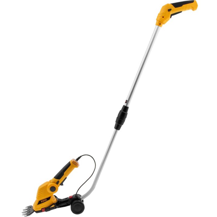 Производитель: Denzel; Габариты: 84 x 11 x 16; Доставка: Платная; Страна: Китай; В боксе: 1 шт; Фасовка: по 1 шт; Габариты товара: 84 см × 16 см × 11 см; Сертификат: Не подлежит сертификации; Напряжение, В: 7,5; Длина лезвия, см: 11; Материал ручки: Пластик; Вид аккумулятора: Li-ion; Ручка телескопическая: Да; Длина инструмента: 4.5" (11 см); Тип: Аккумуляторный; Вид: Ножницы-кусторезы; Сменные лезвия в комплекте: Да; Фиксированная цена: Да
