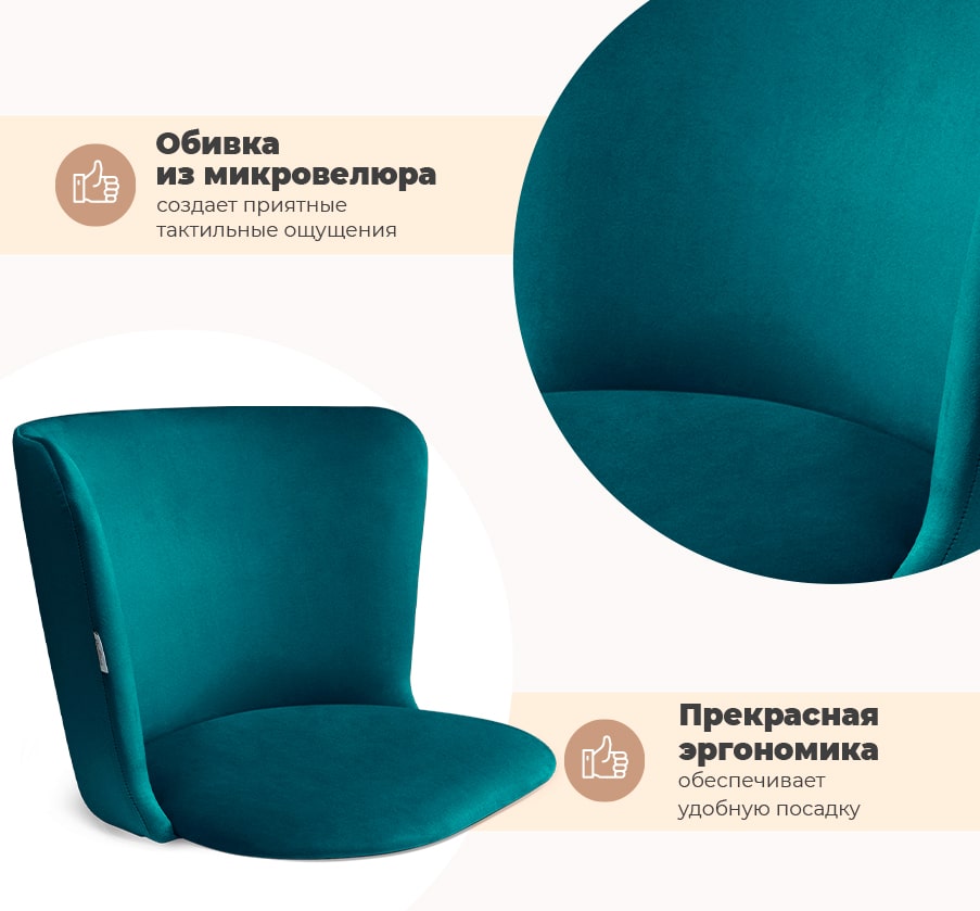 Стильный дизайн заключен в королевской форме сиденья. Нежная расцветка микровелюра внесет уюта в интерьер.